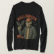 A skeleton holding a bat and wearing casual clothes to add an irony. Full of a spooky aura. This Vintage retro Halloween one was designed to accelerate Halloween vibes