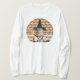 Este cômico amante de gatos no feriado de Halloween é um presente de excelente para um homem, uma mulher, um adolescente e uma criança que adoram gatos e Halloween. Purr-fect para vestir como parte de uma fantasia para uma festa de Halloween ou durante truques ou tratamentos. Se você ama Fall, abóboras, Halloween, bruxas e gatos, esta design festiva é para você! Apresenta um gráfico engraçado de um gatinho de mesa vestindo um chapéu de bruxa e segurando uma vassoura, sentada em frente a um padrão de morcego assustador laranja.