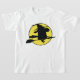 Uma silhueta de bruxas sanduíche sobre uma vassoura contra o sol. Esta design parece realmente eficaz nesta camiseta