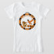 Uma fofa e fofa Camisa de Bash das Bruxas de Halloween para a garota de aniversário. A ilustração tem uma bruxa bonita vagando na noite escura do Halloween com um corvo e Jack o lanternas a seguir. No verso há um design correspondente. Clique em 'Personalizar' para alterar o TEXT com sua escolha de caligrafia.