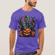 Zumbi de Halloween e seu gato zombie com crânios e lanternas.