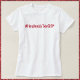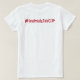 Camisa com #HandmaidsTaleGOP em vermelho, escrita angustiada.