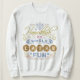 Esta camisola feia de Hanukkah (ou o t-shirt) caracterizam a frase cómico, "Hanukkah são um divertimento inteiro do latke." O design inclui desenhos dos dreidels, de um menorah, da estrela de David e de mais enfeites. A paleta de cores é vermelho cinza-azul, da luz, ouro e marrom.
