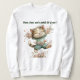 A Cute Women's Sweatshirt With Happy The Cat Dancing With Flowers And A Typography Saying Purrs, bows, and a whole lot of sass.