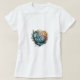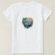 A design da camiseta apresenta a frase "Aguarde sua esperança" em uma fonte ousada e geométrica. Cada letra é composta por diferentes cores que se combinam perfeitamente, criando um efeito vibrante e visualmente marcante. A design é moderna e atenta aos olhos, com um forte enfoque na mensagem positiva de esperança.