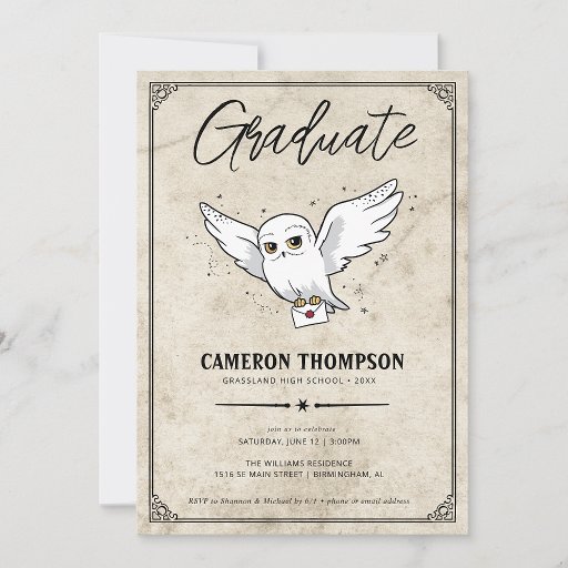 Celebrate a magical achievement with this Harry Potter-themed graduation party shirt featuring Hedwig, the iconic owl. Perfect for fans of the Wizarding World, this shirt adds a touch of Hogwarts charm to your special day, inviting friends and family to join in the celebration of your accomplishments.
