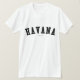 Verifique para fora este t-shirt de Havana! É você de Havana, Cuba? Você tem um amigo ou um membro da família que amem Havana, Cuba? Em caso afirmativo, este t-shirt da "bandeira" é exatamente o presente que você está procurando! As características de design "Havana" na rotulação preta arqueada na pia batismal clássica da faculdade.