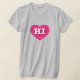 Esta t-shirt tem um coração rosa-quente vibrante contendo as letras maiúsculas, brancas e em negrito HI, a abreviação oficial do Havaí, o estado de aloha.