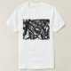 Uma camiseta de alto contraste, preto e branco, de bicicletas acorrentadas e trancadas em D, em bancas de bicicleta na rua Queen, Cardiff. Gales, Reino Unido. Criando um forte desenho quase abstrato de linhas fortes, curvas e círculos.