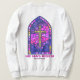 Cross and heart on the front. Beautiful stained glass print and bible verse on the back.