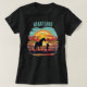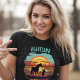 "This heartwarming design features the silhouettes of a horse and a small girl reaching up towards it, set against a stunning, large sun sinking into a vibrant sunset. The artwork employs a retro, vintage color palette with warm oranges, reds, and bright turquoise, and includes distressed brushwork and paint splatter effects. This image captures a moment of gentle connection and the beauty of the outdoors at dusk. It is versatile for products with an equestrian, vintage, or nature-inspired theme. Imagine it on graphic tees, rustic home decor, comforting throws, or sentimental gift items."