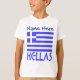 Camiseta de menino com a bandeira grega e a palavra HELLAS em azul. A bandeira mostra faixas azuis e brancas com uma cruz azul e branca na área superior direita. Acima dele, adicione um nome para um toque personalizado ou crie um presente personalizado. Divertido para as reuniões da família grega, grupos viagem, e compartilhando seu amor e orgulho em sua herança, ancestralidade e cultura. Excelente para celebrar o Dia Oxi.