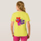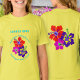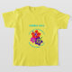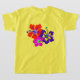 Hibiscus floresce camiseta de reagrupamento familiar trabalho de arte para crianças ou adultos. Um design de hibisco brilhante e ousado, em vermelho, rosa e roxo, é impresso na frente e atrás desta tenda amarela brilhante, de manga curta. O texto azul-aqua pode ser personalizado em três lugares na frente. Inclua o nome da família, a data e o local do evento. O design transferirá para outros estilos, tamanhos e cores, para todos os membros da família.