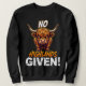 An ultra-grumpy cartoon Highland Cow with massive shaggy bangs, flared horns, and glowing judgmental eyes delivers ancient attitude with the phrase: “NO HIGHLANDS GIVEN!” Standing firm like a guardian of the moors, this design radiates pure sarcasm, apathy, and zero-patience energy.
