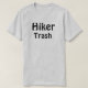 Uma camiseta longa com as palavras Hiker Trash. Um complemento para quem ele ajustado.