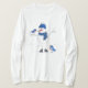 Esta é uma pintura mestiça original de um boneco de neve de pernas compridas com dois pássaros azuis.