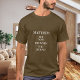 Para uma camiseta marrom. Personalize e adicione um nome. Texto: O Homem, A Lenda, O Mito. Texto branco.