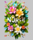Um arranjo floral vibrante enquadra a palavra "ENFERMEIRO", celebrando a compaixão e o cuidado da profissão. Flores de cor clara e verde esmagador destacam o papel essencial que as enfermeiras desempenham.