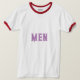 Texto ou Nome Homens ou Palavra com Texto a Cor da Lavanda e O Estilo é Camiseta Básica de Ringer, O tipo de Cor é Branco/Vermelho e o Tipo de Tamanho é Adulto 2X. Você pode editar o nome do texto de MEN. Versatilidade: As T-shirts de toque básico são versáteis e podem ser vestidas casualmente com jeans, calções ou saias. Eles também podem ser colocados em camadas sob jaquetas ou emparelhados com vários acessórios para criar diferentes aparência. Unisex: As T-shirts ruidosas são muitas vezes concebidas para serem uníssonas, fazer-as adequadas a homens e mulheres. Popularidade: Camisas Ringer têm sido uma escolha popular de moda por décadas