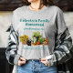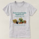 Camiseta de fazenda familiar/de negócios de casa. Teto de cinza com texto verde-lacrimejante e legumes e flores de design frescas colhidos. Personalize com o nome da fazenda, a data estabelecida ou ao serviço da comunidade e os produtos oferecidos. Use também o modelo no verso para endereço/local ou local de mercado, ou exclua o texto da amostra, o que diminuirá o custo. O design contém cenouras e outros vegetais em uma cesta perto de uma lata de água. Um gatinho preto se agacha perto de um cesto de girassóis.