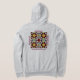 Parte dianteira e parte traseira do logotipo em um hoodie do fecho de correr.