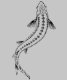 Esturjão estilizado/Nadador com sulcos dorsais na linha de cheio (os esboços são de esturjão-do-Atlântico, mas maiores como um lago)