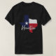 Houston, no Texas, mapeie a camiseta negra dos design. Este design apresenta a palavra "Houston" em um roteiro elegante, letra no estilo caligrafia em branco com contorno de cinza clara no topo do mapa do estado que está preenchido com a bandeira do Texas. Esta camiseta é uma forma excelente de mostrar que você está orgulhoso de ser de Houston, TX.