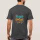 Uma design de camiseta ousada e divertida com a frase "Humor Our Language". O texto é organizado em um padrão dinâmico, multicolorido, com cada letra mostrando uma matiz vibrante. O design geral transmite um sentido de diversão, criatividade e uma celebração da linguagem e do humor.