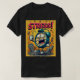 MG_8491.CR2: Design a humorous T-shirt featuring a clock character with frantic, bulging eyes, a cracked face, and hands spinning wildly. The character wears a tie, clutching a coffee cup and alarm bell. Surround it with clock gears, swirling numbers, and alarm symbols. The background is bright yellow, providing a chaotic contrast. Graffiti and urban textures cover nearby walls, evoking a fast-paced city vibe. Display ‘STRESS!’ in a cartoony, bold font with red neon glow effects. Use highlights and shadows to emphasize the panic and humor in the design.