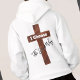 This design refers to the worship song, “ I Choose the Jesus Way”. A cross design, with those words written cover the back of this hoodie. Show your faith - make your statement. Blessings!