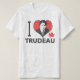 Eu Corto Trudeau. Eu Amo Justin Trudeau. Com uma Folha de Maple Canadiana vermelha. Primeiro-Ministro Liberal do Canadá. O rosto de Justin foi feito como ilustração gráfica e terminou com um olhar grunhido e angustiado.