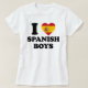 Ik houd van Spaanse jongens. I heart Spanish boys. Met zwarte letters en het hart is met de Spaanse vlag. Als je gek bent op jongens die uit Spanje komen.