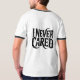 Embody a defiant and rebellious attitude with this bold graphic tee. Featuring aggressive, sharp-angled Gothic typography, the "I NEVER CARED" statement dominates in stark black and white, a perfect monochrome contrast for any outfit.