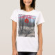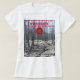 T-shirt branca com gráficos vermelhos e brancos e uma fotografia do rescaldo de um incêndio florestal com o logotipo "AT THE TIPPING POINT #T-OTLOTC TETTERING-ON THE LIP OF THE CUP THE FOREST-AFTER THE FIRE" com I-BONE-LTD. O caráter intenso e feroz dos incêndios no Ocidente deveria ser um acordar de apelos a todos que estamos a enfrentar algo sem precedentes. Pelo que posso dizer, nada mudou, nada foi feito para diminuir o aquecimento global.