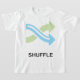 O ícone embaralhar com setas verdes e azuis e a palavra embaralhar. Esta design parece realmente eficaz nesta camiseta