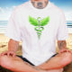 © Sunny Mars Design - Green Caduceus Alternativo Medicine Symbol Camisetas Personalizadas - Unique personalizada estampada médica ou holística t-shirts ou camisetas masculinas e masculinas com símbolo Caduceus modificado com folhas e vinhas em vez de asas e serpentes. Conceito de alternativo ou utilização combinada de alternativos e de práticas médicas convencionais.