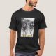 Iditarod T-shirt mostra cães de trenó correndo. Desenho da clássica corrida de cães de trenó no Alasca em camiseta escura.