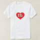 Esta camiseta apresenta um coração vermelho vibrante contendo as letras maiúsculas, brancas e em negrito IL, a abreviação oficial de Illinois, o estado prairie.