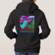 Camisola com capuz engraçada para mulheres adultas com ilustração de dinossauro pixelado; Este design nostálgico engraçado apresenta arte pixelada de um dinossauro na natureza. Há montanhas, árvores de pinheiro e nuvens no céu colorido. Na frente da camisola com capuz, fonte pixelada "START" e atrás fonte pixelada "GAME OVER", usei uma paleta de cores vibrantes para dar à arte uma estética de jogos de vídeo dos anos 90.