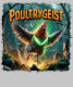 Uma galinha espectral, irradiando um brilho estranho verde de dentro, freneticamente bate suas asas pelo ar. A galinha fantasma tem olhos vermelhos piercing e penas que parecem se dissolver em fumaça, posicionada ligeiramente fora do centro para criar uma sensação de movimento caótico. Atrás da galinha estica uma floresta atordoada e assombrada envolta em neblina, iluminada por uma lua de cheio pálida. Acima da cena, arquivada em uma fonte ousada, bota o título "POULTRYGEIST." #humor #humorístico #comédia #animal #FunnyAnimal #FunnyChicken #ScaryAnimal #FunnyJoke #ComboCreature #poltergeist #ghost #frango #rooster #bizarre #estranha #absurda #fantasia #surreal #imaginativa #piada criativa #paródia #horror #assustador #paródia