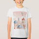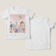 The peachy-pink sky with a crescent moon and hot air balloons gives the illustration a dreamy and peaceful atmosphere.