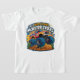 design para uma camiseta de monstro para crianças, apresentando um grande e brilhante caminhão de monstro com rodas superdimensionadas. O caminhão está dirigindo sobre obstáculos como rampas e montículos de terra, e ele é enfeitado com números de corrida, adesivos e uma trilha de exaustão brilhante. O fundo é um padrão vivo e colorido que complementa o design do caminhão. O texto "ESSAS CRIANÇAS ADORAM MONSTER TRUCKS" é exibido de forma destacada, acrescentando um toque pessoal e mostrando a paixão da criança por caminhões monstros. O design geral é enérgico e divertido, perfeito para inspirar jovens imaginações e promover um amor pelo mundo excitante dos caminhões monstros.