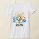Imprimindo em roupas brancas. Para mulheres. Símbolo dos Jogos Olimpiadas. As Olimpiadas de Verão serão realizadas em 2028, nos EUA, em Los Angeles.