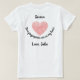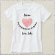 Linda t-shirt com coração rosa-vermelho coberto de impressões digitais. '[NAME] Suas impressões digitais estão no meu coração" em letras pretas de script. PERSONALIZAR com o nome do destinatário e quem é o remetente. Excelente para Dia de os namorados!