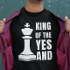 T-shirt divertida IMPROV com TEXTO PERSONALIZÁVEL. Ideal para pessoas que adoram improviso e xadrez. Design apresenta uma peça de xadrez do rei e uma tipografia ousada que lê REI DO SIM E. Também disponível em branco.