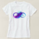 Símbolo infinito com uma bela pena pintada em cores roxas e azuis brilhantes sobre fundo branco.