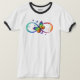 Camiseta Infinidade vibrante com borboleta arco-íris a pret