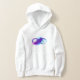 Símbolo do infinito com uma bela pena pintada em cores vibrantes roxas e azuis sobre um fundo branco.