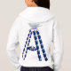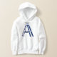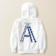 Letra Inicial A feita com imagens de Gemas de Sapphires em Pedra Retangular, Corte de pera e Marquesa, dentro do centro trapezoide cortado e rico cortado Diamantes no grande apfleto marquesa, acentuado com uma flor branca no Topo da letra A. Sapphire é a pedra de origem de setembro. Azul é a cor da garganta Chakra.