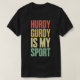Isso simplesmente diz "hurdy gurdy é meu esporte" e é feito para pessoas que gostam de tocar instrumentos musicais, especialmente a viola de roda.